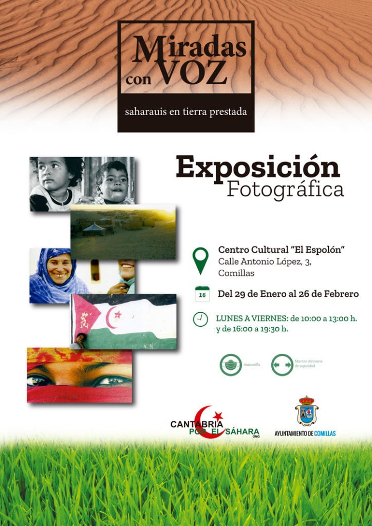 La exposición “Miradas con voz: Saharauis en tierra prestada” de Cantabria por el Sáhara se podrá visitar durante el mes de Febrero en el Centro Cultural “El Espolón” de Comillas, Cantabria por el Sáhara retoma así sus actividades expositivas en colaboración con el Ayuntamiento de Comillas.