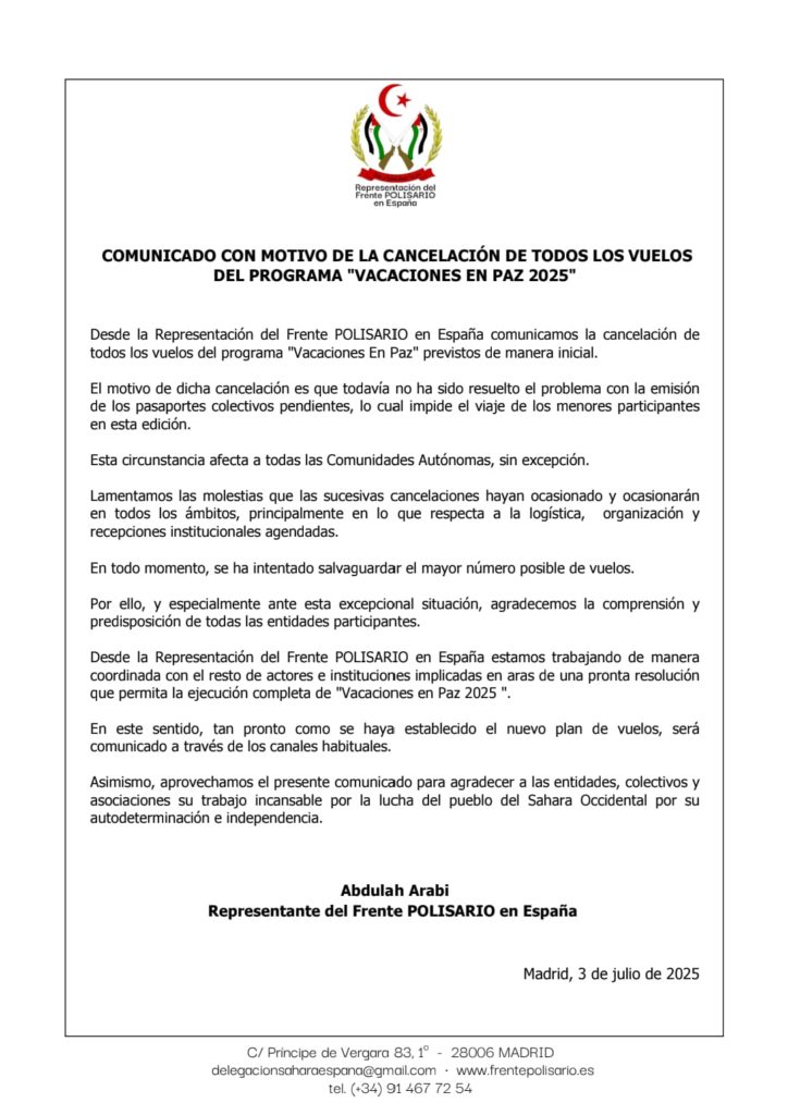 Comunicado de la Representación del Frente POLISARIO en España