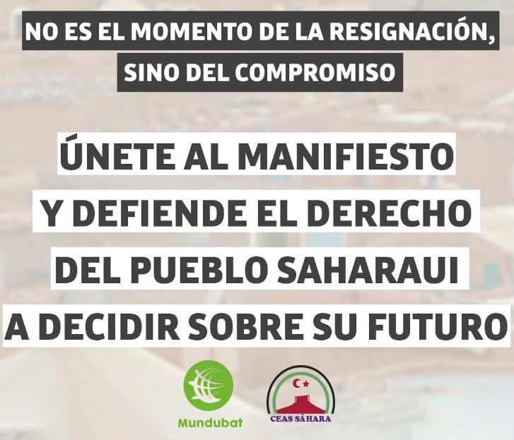 Exigimos:1. El reconocimiento firme e inequívoco del derecho del pueblo saharaui a la autodeterminación, mediante la organización de un referéndum libre y con garantías, en el marco del mandato de las Naciones Unidas.
