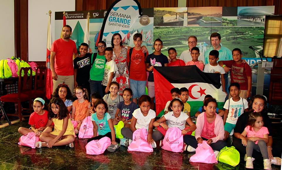 El martes pasado, 24 de julio, la Alcaldesa de Santander, Gema Igual recibió a una representación de los niños y niñas saharauis del programa Vacaciones en Paz y las familias de acogida residentes en Santander y su entorno. En el acto también estuvieron presentes miembros las asociaciones que gestionan el programa en nuestra comunidad, Cantabria por el Sáhara y Alouda Cantabria. Gabriel Herrería, Presidente de Cantabria por el Sáhara, tuvo un recuerdo para los niños y niñas que este verano no han podido participar en Vacaciones en Paz y permanecen junto a sus familias soportando las altísimas temperaturas del verano de Tinduf, que este año se han aproximado a los 60ºC y planteó la responsabilidad de los políticos en el estancamiento del conflicto que mantiene al Pueblo Saharaui en el exilio de Tinduf o bajo la ocupación marroquí en el Sáhara Occidental. Por su parte, Angel Oria, Presidente de Alouda Cantabria, pidió perdón a los niños y niñas saharauis por no haber sido capaces, después de más cuarenta años, de transmitir la necesidad de terminar con un conflicto que les obliga a vivir en un campo de refugiados. Gema Igual dio la bienvenida a los menores a la ciudad, en plena Semana Grande por la festividad de Santiago, reconoció el trabajo de Alouda Cantabria y Cantabria por el Sáhara y la solidaridad de las familias de acogida, deseó a los niños y niñas saharauis que no tengan que regresar a Santander como refugiados y se comprometió con las asociaciones a seguir manteniendo el apoyo del ayuntamiento de Santander al programa Vacaciones en Paz.